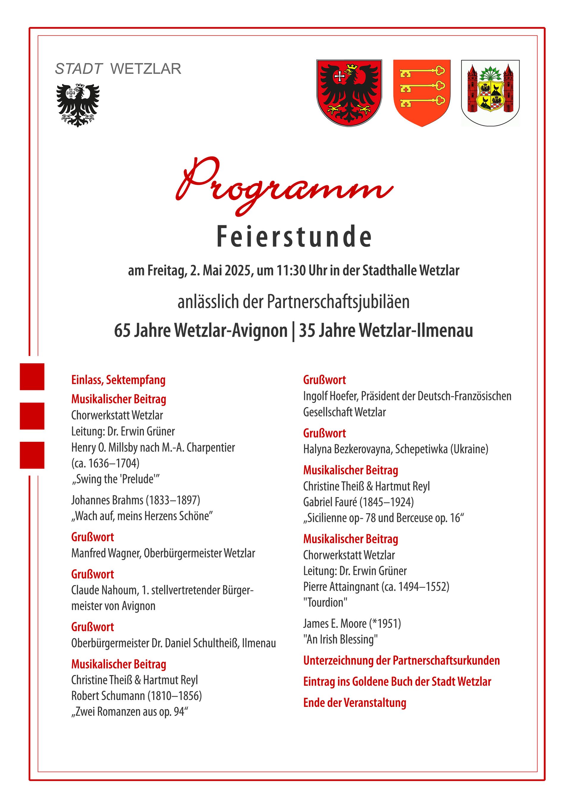 Partnerschaftsjubiläum - 65 Jahre Wetzlar - Avignon, 35 Jahre Wetzlar - Illmenau