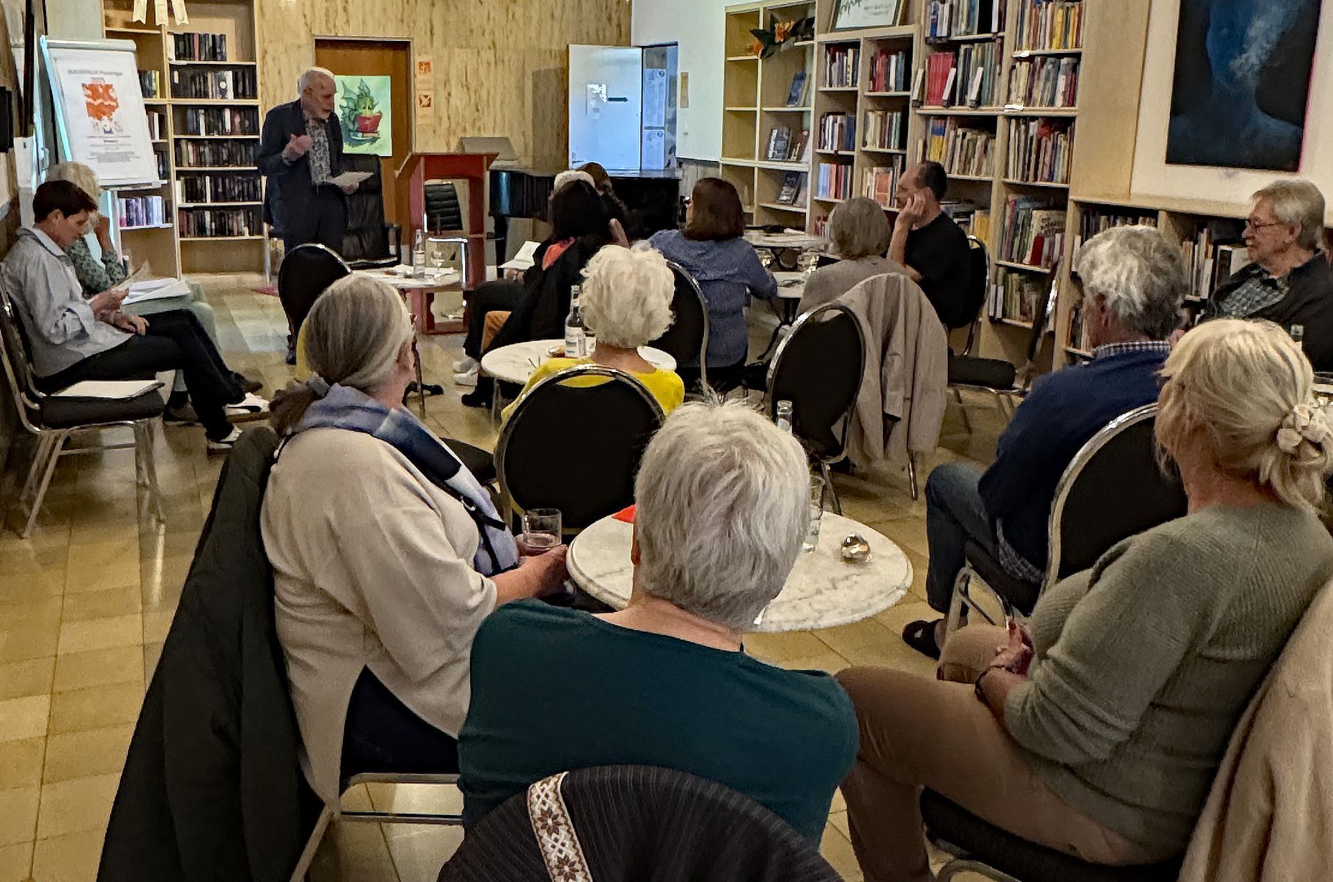Aber es gab eine große Überraschung, als ein Zuhörer aus dem Publikum aufstand, und – angeregt durch die vielen herbstlich-bedrohlichen Bildeindrücke - eine schauerliche Ballade von Ina Seidel vortrug, die er schon als Schüler auswendig gelernt hatte.