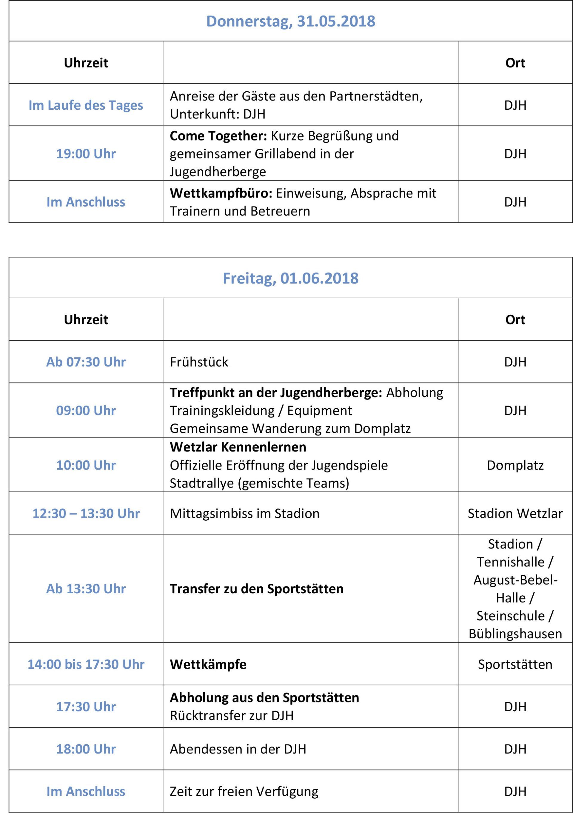 Rund 200 junge Sportler aus Wetzlar und den Partnerstädten Pisek (Tschechien) und Avignon (Frankreich) haben sich in den Disziplinen Handball, Fußball, Tennis, Leichtathletik und Basketball gemessen. Eingeladen hat die Stadt Wetzlar in Zusammenarbeit mit Wetzlarer Sportvereinen anlässlich des zehnjährigen Partnerschaftsjubiläums zwischen Wetzlar und Pisek. Neben dem sportlichen Wettkampf steht das Kennenlernen der Jugendlichen im Vordergrund. Die Jugendspiele sollen die Freundschaft zwischen europäischen Nationen fördern, die seit Jahrzehnten auf der Ebene der Städtepartnerschaften praktiziert wird. Unterstützt wurde die französische Delegation von der DFG, die als Übersetzer tätig war.